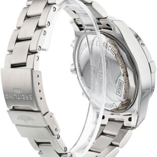 convex sapphire crystal, glare-proofed both sides. The bezel features a brushed / satin top with a polished edge. It is unidirectional and has engraved graduation marks. As well as polished quarter o’clock markers with engraved numerals at 15, 30 and 45 and a luminous dot at 0. Breitling Caliber 13 contains 25 Jewels and has an approximate power reserve of 42 hours. The watch presented on a Brushed Stainless Steel bracelet Pro III with Folding Clasp with Safety Latch. The water resistance is up to 2000m/6600ft