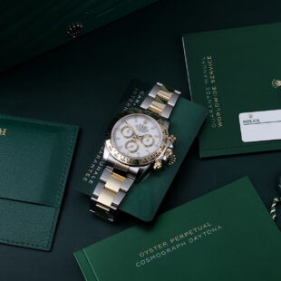 Gold is coveted for its lustre and nobility. Steel reinforces strength and reliability. Together, they harmoniously combine the best of their properties. A true Rolex signature, Rolesor has featured on Rolex models since the early 1930s, and was trademarked as a name in 1933. It is one of the prominent pillars of the Oyster collection.