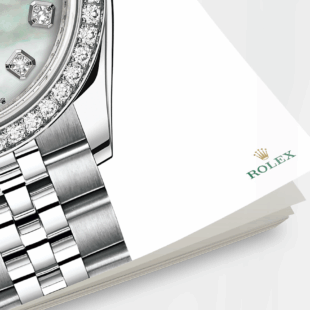 Dial color: White mother-of-pearl dial with a fine sunrays and 10 Diamonds as hour markers framed in 18k White Gold
